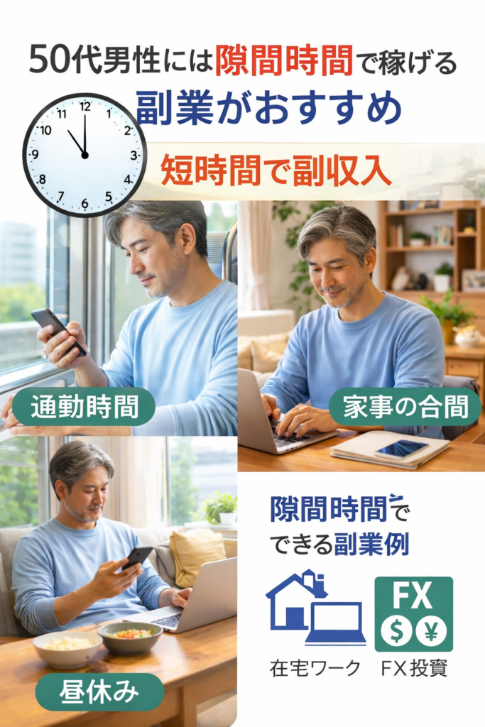 したがって、50代男性には「通勤時間や昼休み、家事の合間」といったスキマ時間で完結する副業がおすすめです。