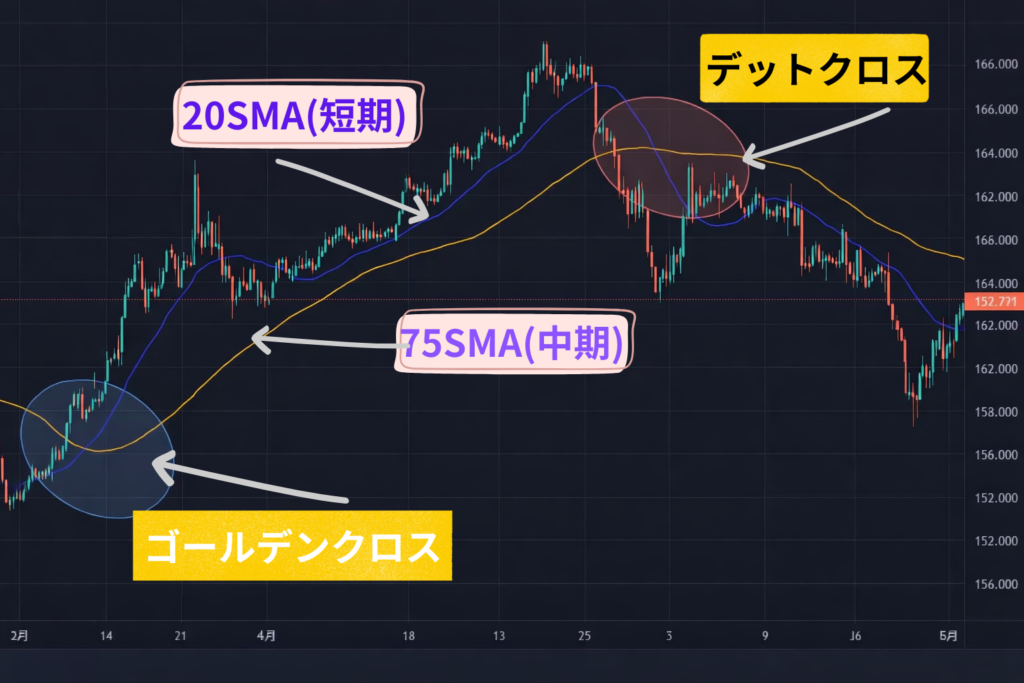 ・長期SMA(例:75SMA) → 大きな流れ