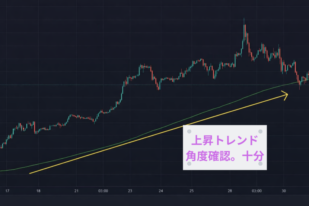 この線が「右肩上がりなら上昇トレンド」「右肩下がりなら下落トレンド」と一目で判断できます。