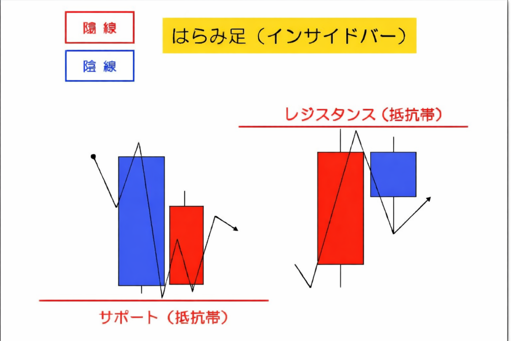 - 活用方法: はらみ足自体でエントリーするのではなく、その後のブレイクアウト(はらみ足のレンジを上または下に抜ける)を狙う、またはトレンドの小休止として判断するために使用します。
