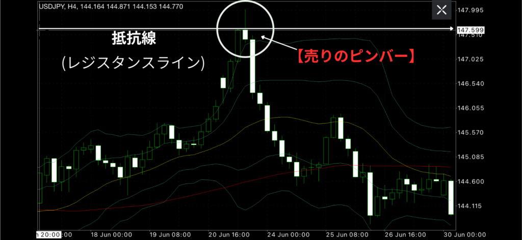 例) 抵抗線(レジスタンスライン)売りのピンバー
