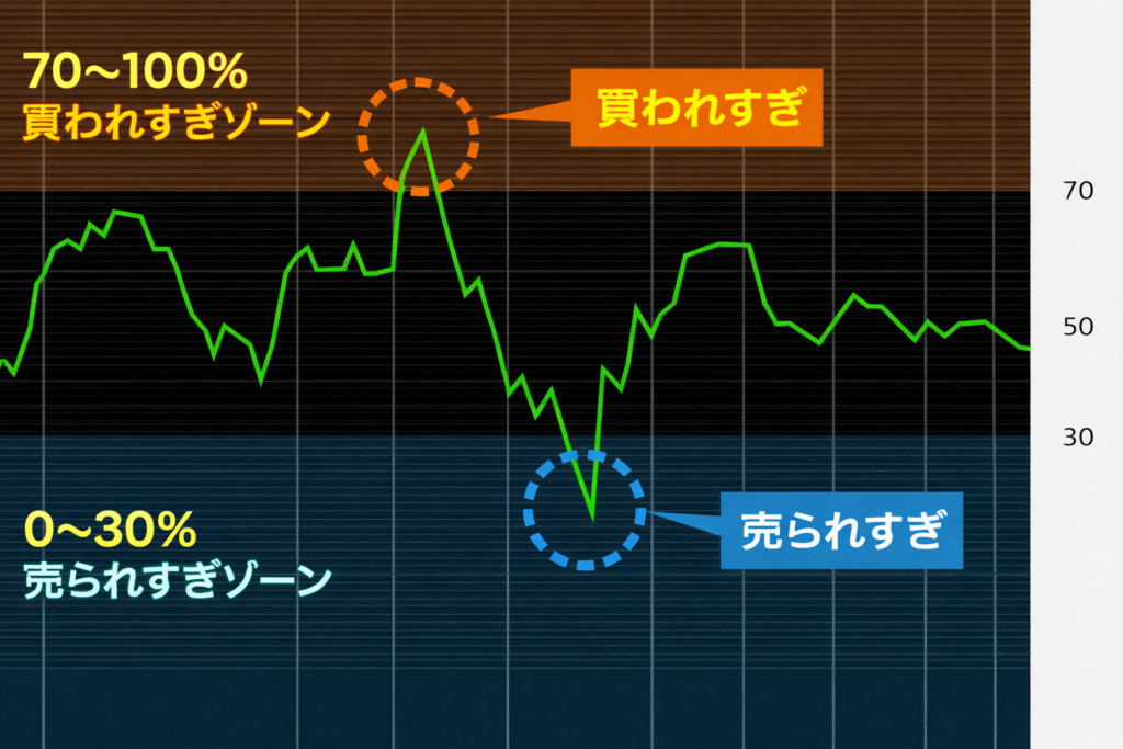 RSIは、相場の「買われすぎ」「売られすぎ」を数値で示すオシレーター系指標の代表格です。